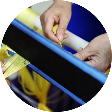 穿综穿扣是将经纱按照一定的顺序穿过织锦机的综丝和扣子。综丝是织锦机上用于提起经纱形成梭口的装置,扣子则用于固定经纱的两端。将经纱依次穿过综丝的孔眼,并在两端分别固定在扣子上,这个过程需要精确操作,确保经纱的顺序正确,这样才能在织造时形成正确的梭口,织出清晰的图案。